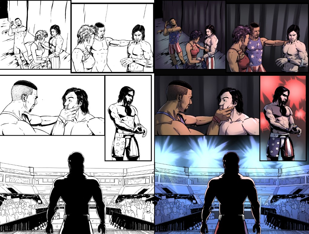 Colors for ‘Razor Wire McGuire‘ (Written by Stephen Rios, Inks by Jordan Direnzo)