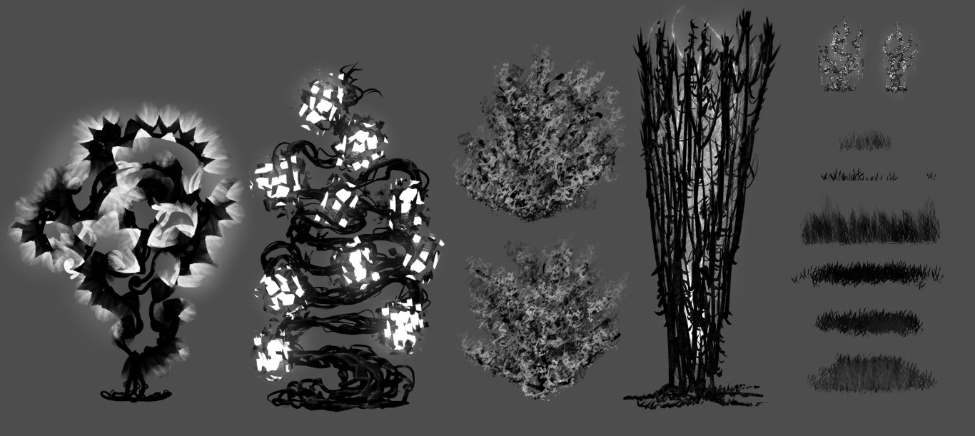 Environment design for 2D scroller ghastly adventure game, using Clip Studio, GIMP, and Unity.