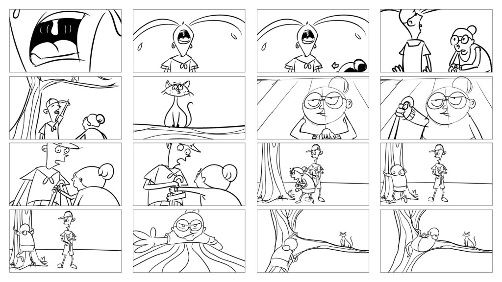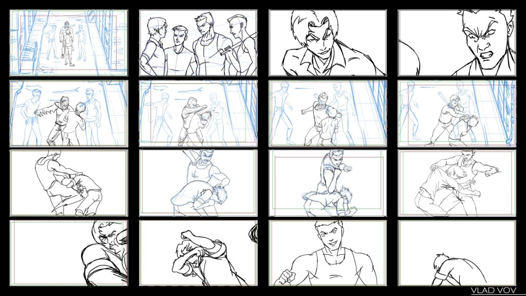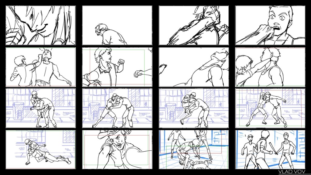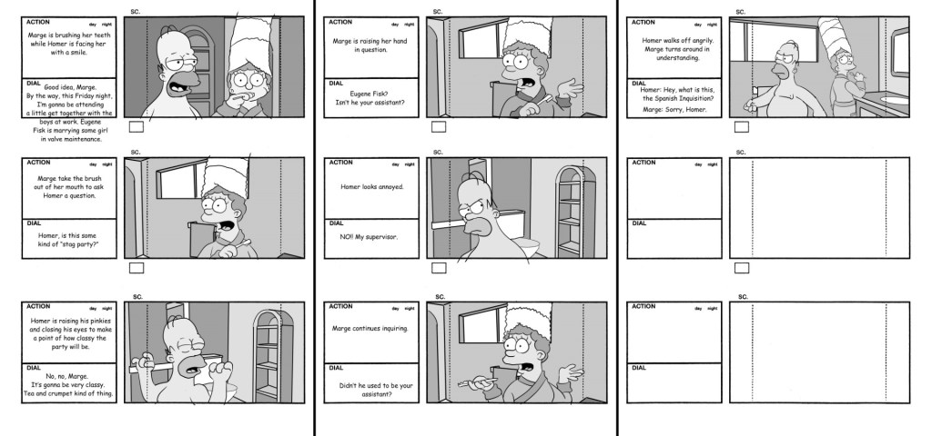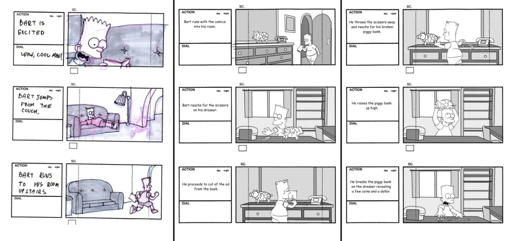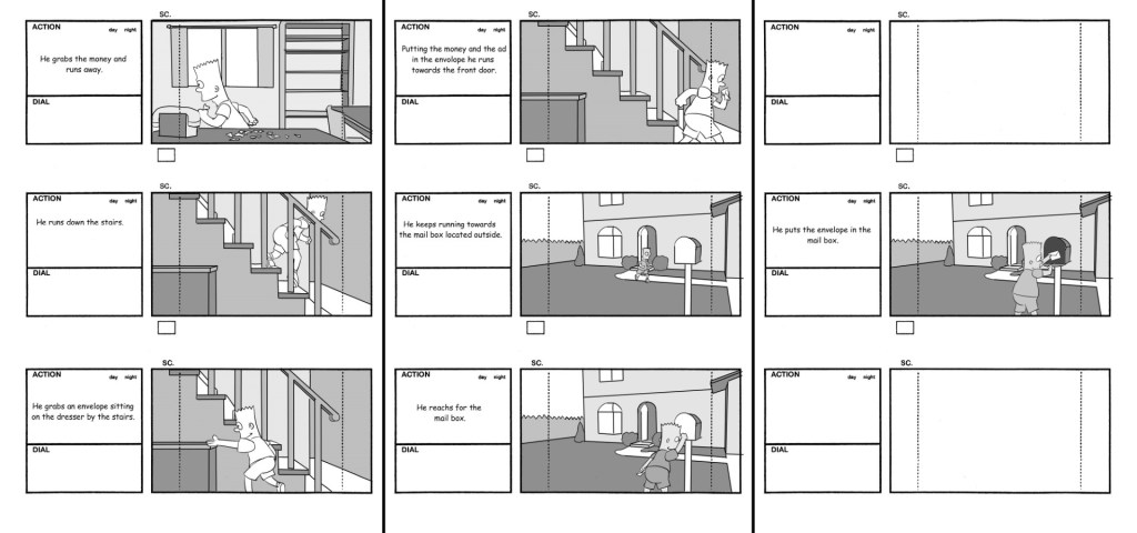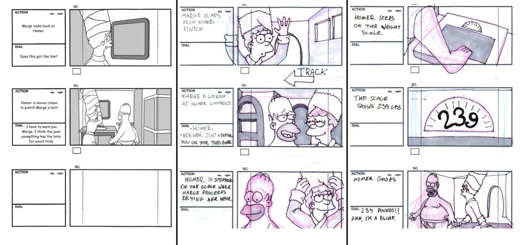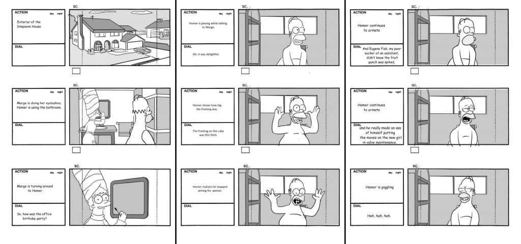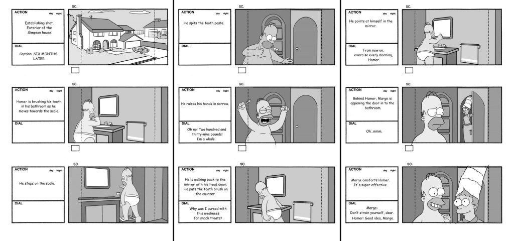 Storyboards Refuge Coffee Co – Whiteboard Boards Street Fight Animatic Simpsons – Spy Camera (student work)